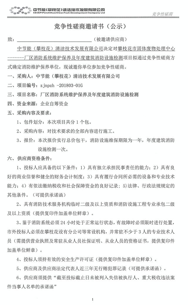 廠區(qū)消防系統(tǒng)維護保養(yǎng)及年度建筑消防設(shè)施檢測項目競爭性磋商邀請書(公示)