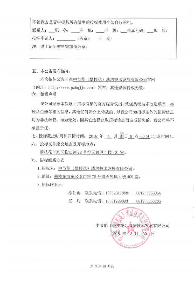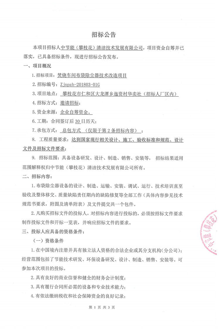 焚燒車(chē)間布袋除塵器技術(shù)改造項(xiàng)目招標(biāo)公告