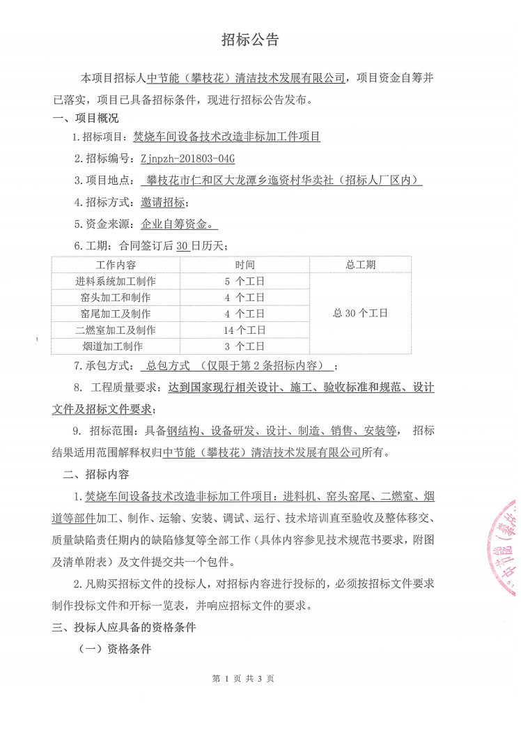 焚燒車間設(shè)備技術(shù)改造非標(biāo)加工件項目招標(biāo)公示