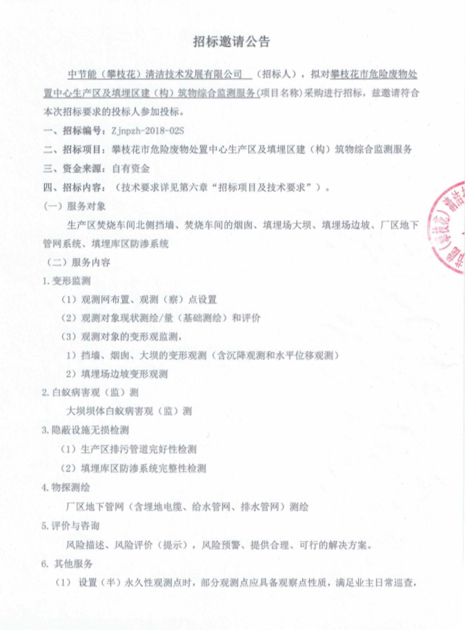 生產(chǎn)區(qū)及填埋區(qū)建(構(gòu))筑物綜合檢測服務(wù)采購進行招標邀請公告